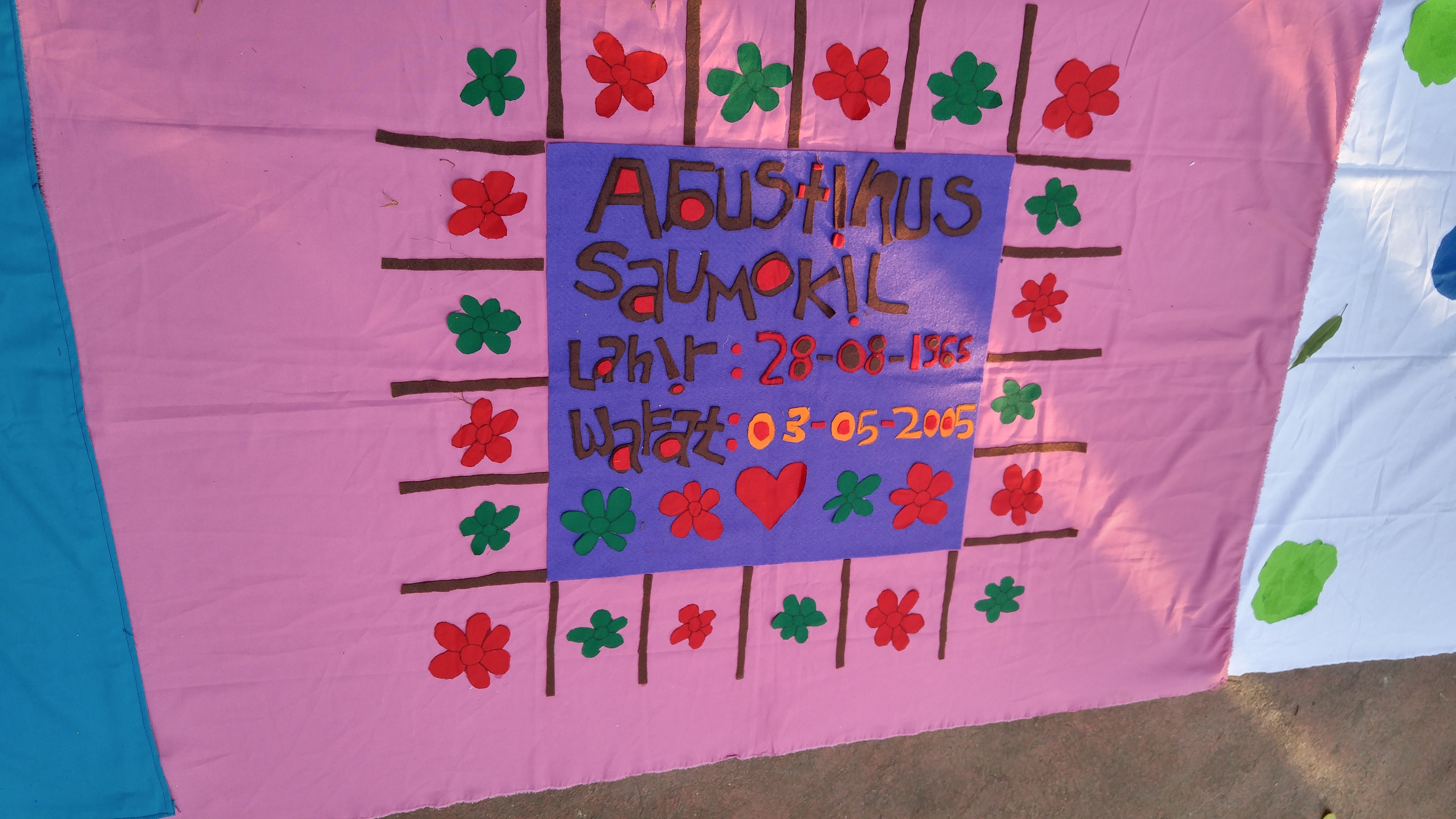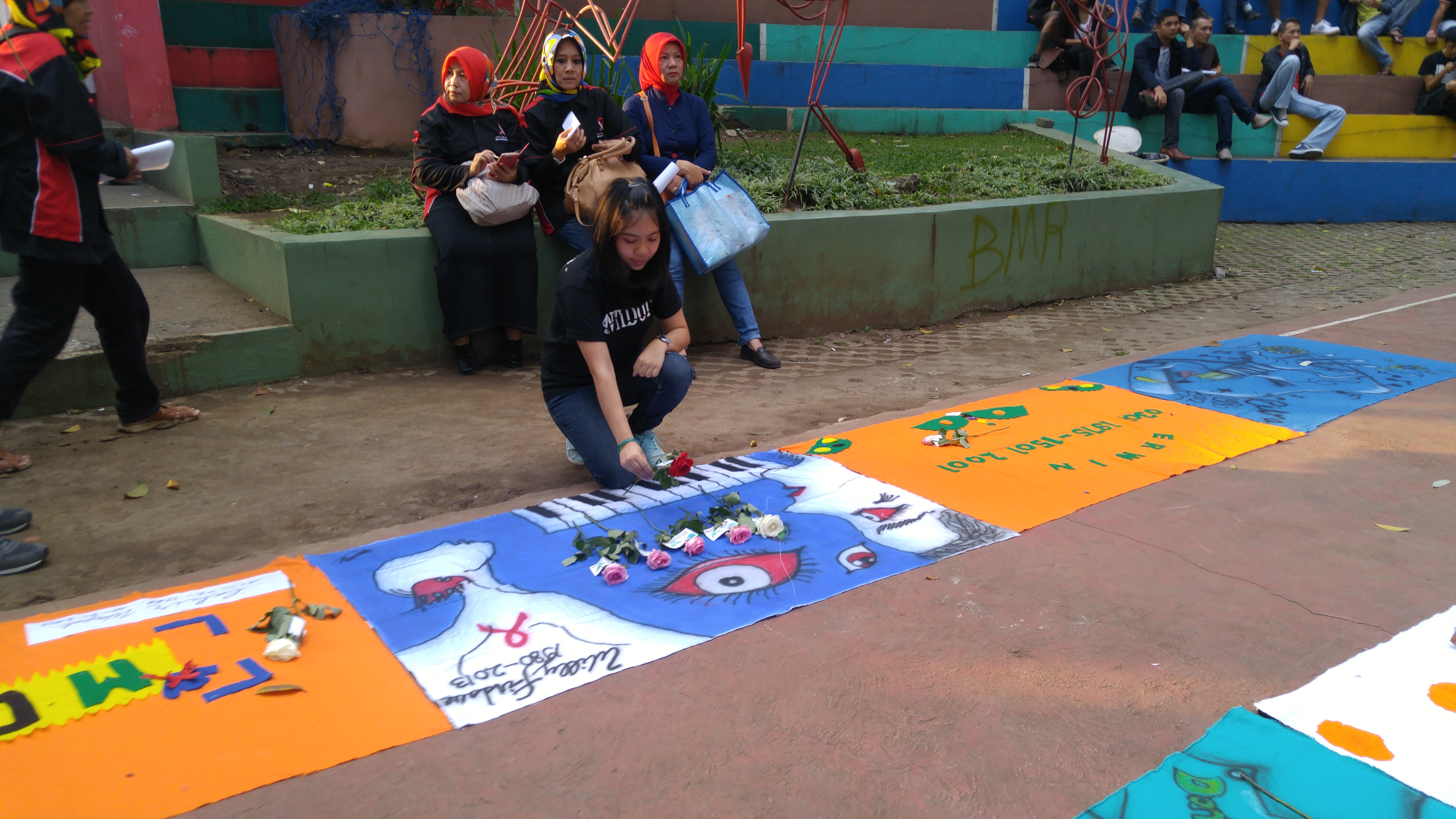 Aku memotret banyak hal. Mengambil gambar ketika orang-orang turut merasakan simpati dengan menyimpan bunga pada nama-nama di kain itu. Aku salut karena banyak orang yang turut serta memberikan dukungan. Hanya saja kadang aku selalu bertanya, apakah mereka benar-benar tulus melakukannya? Atau hanya karena ikut-ikutan? Entahlah, aku tidak mau berburuk sangka.