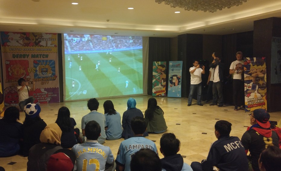 Saya menonton pertandingan bola Liga Inggris pada gelaran nonton bareng yang diselenggarakan oleh Viva.co.id yang bekerjasama dengan Asia Bagus.