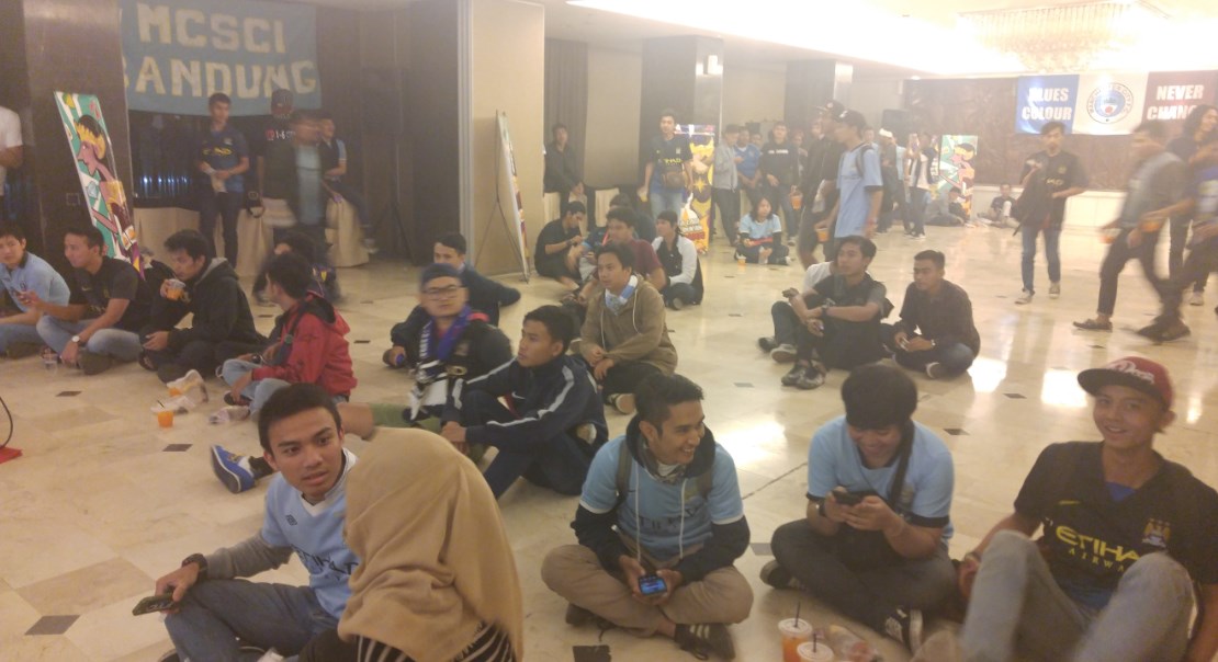 Sebelum saya hadir ke lokasi, saya membayangkan bahwa nonton bareng nanti akan dipenuhi oleh fans dari kedua tim. Tapi, saat sampai lokasi, saya menemukan fakta bahwa nonton bareng itu khusus dihadiri oleh Citizens (sebutan untuk fans Manchester City) dari Bandung.