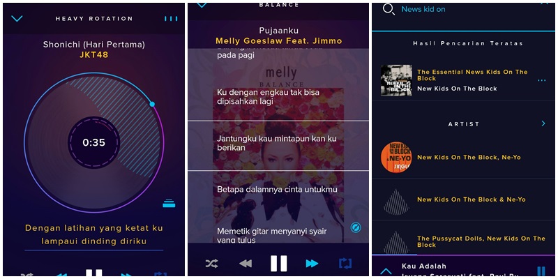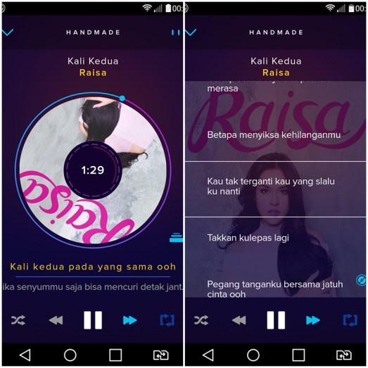 Saya tidak bisa bahas panjang lebar untuk yang satu ini. Kenapa? Karena menurut saya Langit Musik sudah cukup sukses menampilkan lagu yang diputar, lengkap dengan pilihan liriknya yang sangat membantu untuk mereka yang suka berkaraoke. Pilihan tampilan seperti disc yang memutar juga patut diacungi jempol.