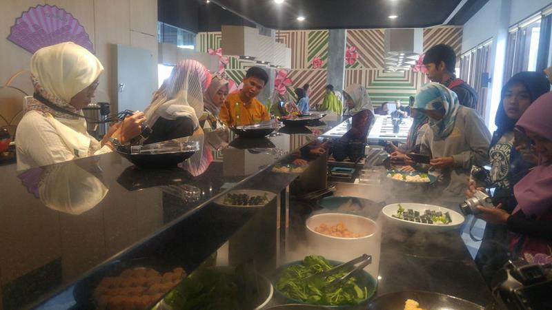 Saya sendiri menikmati sekali makanan yang disajikan. Saya bisa megambil banyak makanan khas Jepang, seperti Udon misalnya. Karena saya jarang makan di tempat all you can eat, ada kekakuan dari cara saya menikmati makanan. Ternyata di tiap meja, sudah ada panel untuk memasak dan menghangatkan makanan. Hal yang lumrah bagi restoran all you can eat.