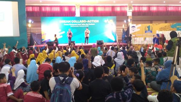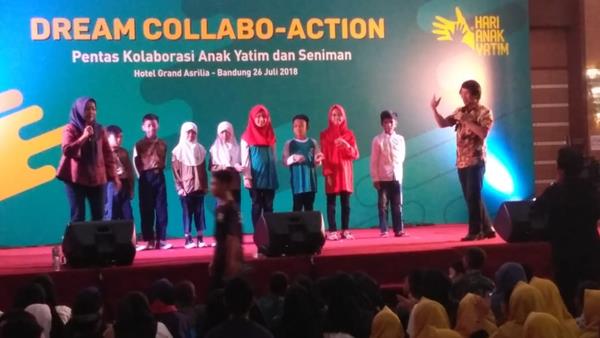 Dukungan Kak Seto ini menegaskan betapa pentingnya Hari Anak Yatim Nasional. Sayangnya, Kak Seto tidak sempat hadir pada konferensi pers karena ada kegiatan lain di luar kota. Namun, Kak Seto tetap hadir pada saat pertunjukan Dream Collabo-Action seperti pada foto berikut ini.