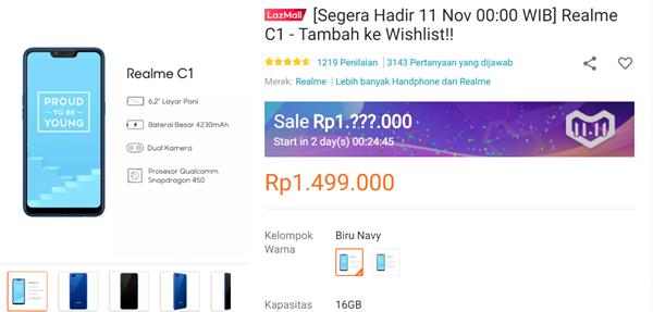 Terlihat di gambar kalau Realme C1 bisa saya dapatkan dengan harga spesial pada event “Lazada 11.11” Sebagai informasi, Lazada 11.11 adalah event yang spesial karena 11.11 ini sering dirayakan sebagai “single day”. Dari namanya jelas kalau hari ini ditujukan khusus untuk merayakan hari spesial para jomlo.