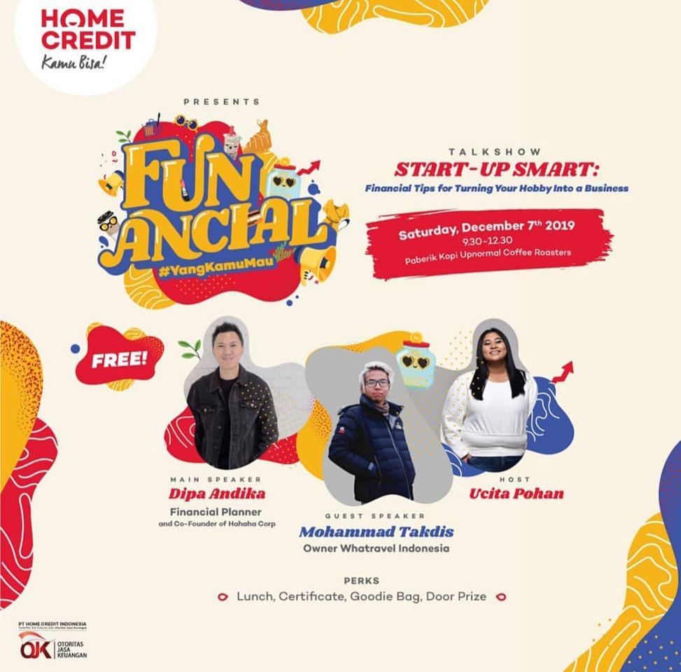 Setidaknya, hal tersebut yang bisa saya simpulkan dari diskusi menarik bertajuk “Start-up Smart: Financial Tips For Turning Your Hobby Into a Bussiness”. Sebuah talkshow bertemakan FUNancial yang diselenggarakan oleh Home Credit Indonesia. Acara tersebut berlangsung pada 7 Desember 2019 di Paberik Kopi Upnormal Coffee Roasters.