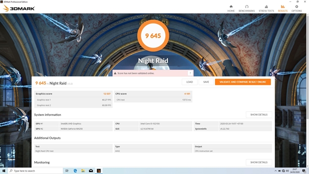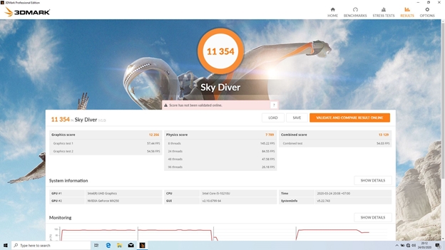 Kemampuan dari grafisnya ini terbukti dari hasil 3D Mark yang besar. Hal ini juga membuat laptop ini juga sebenarnya bisa digunakan untuk bermain game esport dan kasual. Cek hasil skor 3D Mark yang tergolong tinggi yang menunjukan performa laptop ini juga cocok untuk kerjaan sedikit berat.