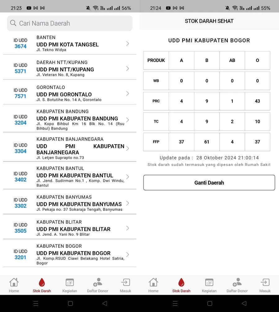 - Informasi stok darah: DONORKU menyediakan informasi stok darah di PMI terdekat secara real-time. Dengan begitu, pengguna bisa mengetahui ketersediaan darah yang dibutuhkan sebelum pergi ke PMI. Tidak perlu lagi bolak-balik ke PMI dan kecewa karena stok darah yang dicari sedang kosong.