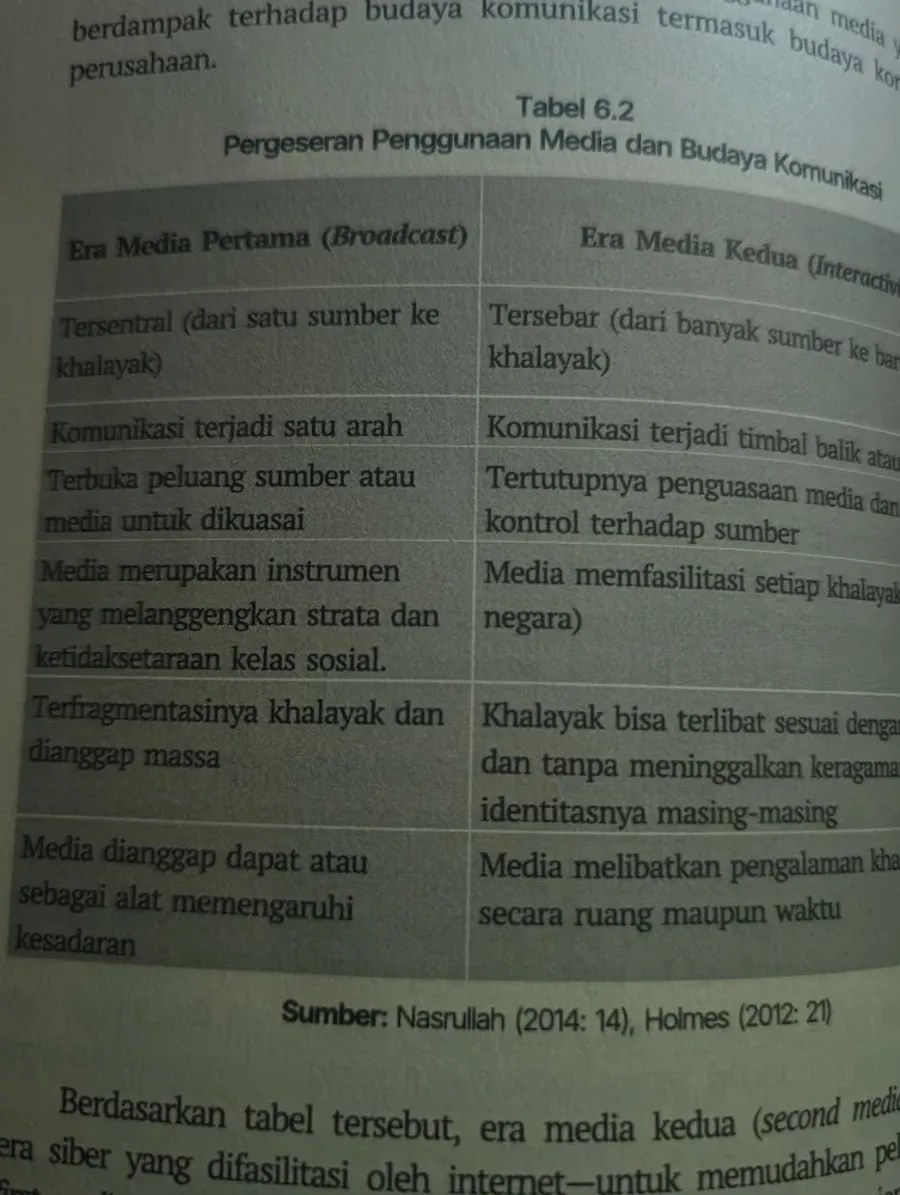 Dari gambar tersebut, dapat dilihat bahwa dulu, era pertama, media massa seperti televisi dan radio mendominasi lanskap informasi, dengan karakteristik yang sangat terpusat. Informasi mengalir satu arah, dari sumber ke khalayak, dan khalayak dianggap sebagai massa yang homogen. Namun, seiring dengan perkembangan teknologi digital, terutama internet, pola komunikasi ini mengalami pergeseran drastis